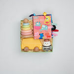 Celebrate the little one's special day with our thoughtfully curated Neutral Birthday Hamper! Perfect for both boys and girls, this delightful gift set includes a colorful Ring Stacker that helps develop hand-eye coordination, a charming Ruffle Farm Theme Cloth Book filled with fun textures and farm animals, a cute Wobble Toy that encourages balance and coordination, and a fun Push-and-Pull Toy Car to keep them entertained. Each item is designed to inspire creativity, learning, and joy, making this the perfect present for any birthday celebration!