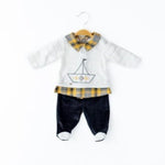 This adorable set features a classic checkered design, adding a touch of timeless charm. The top is adorned with a playful ship embroidery, sparking imagination and adventure. Crafted with premium quality fabric, this outfit ensures maximum comfort for your child while keeping them looking cute and trendy. Ideal for casual outings or playtime, the Checkered Two-Piece Set is both practical and stylish—just what every little explorer needs!